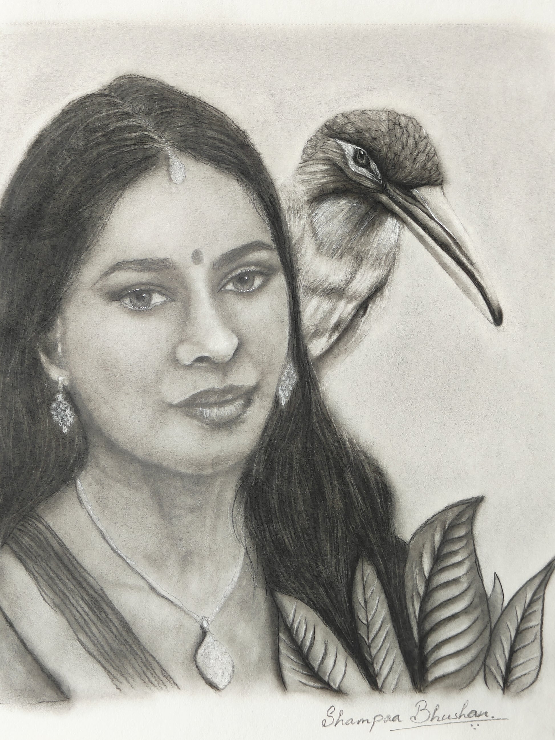 This artwork shows a young girl bathed in warm sunlight, gently gazing at a bluebird perched on her shoulder. Her relaxed posture creates a quiet moment of trust between them, as if they share an unspoken bond. The bird symbolizes the harmony that can exist between humans and nature. This sketch is a gentle reminder to respect and connect with the world around us. It’s a message of coexistence, carried softly on a bird’s wings.