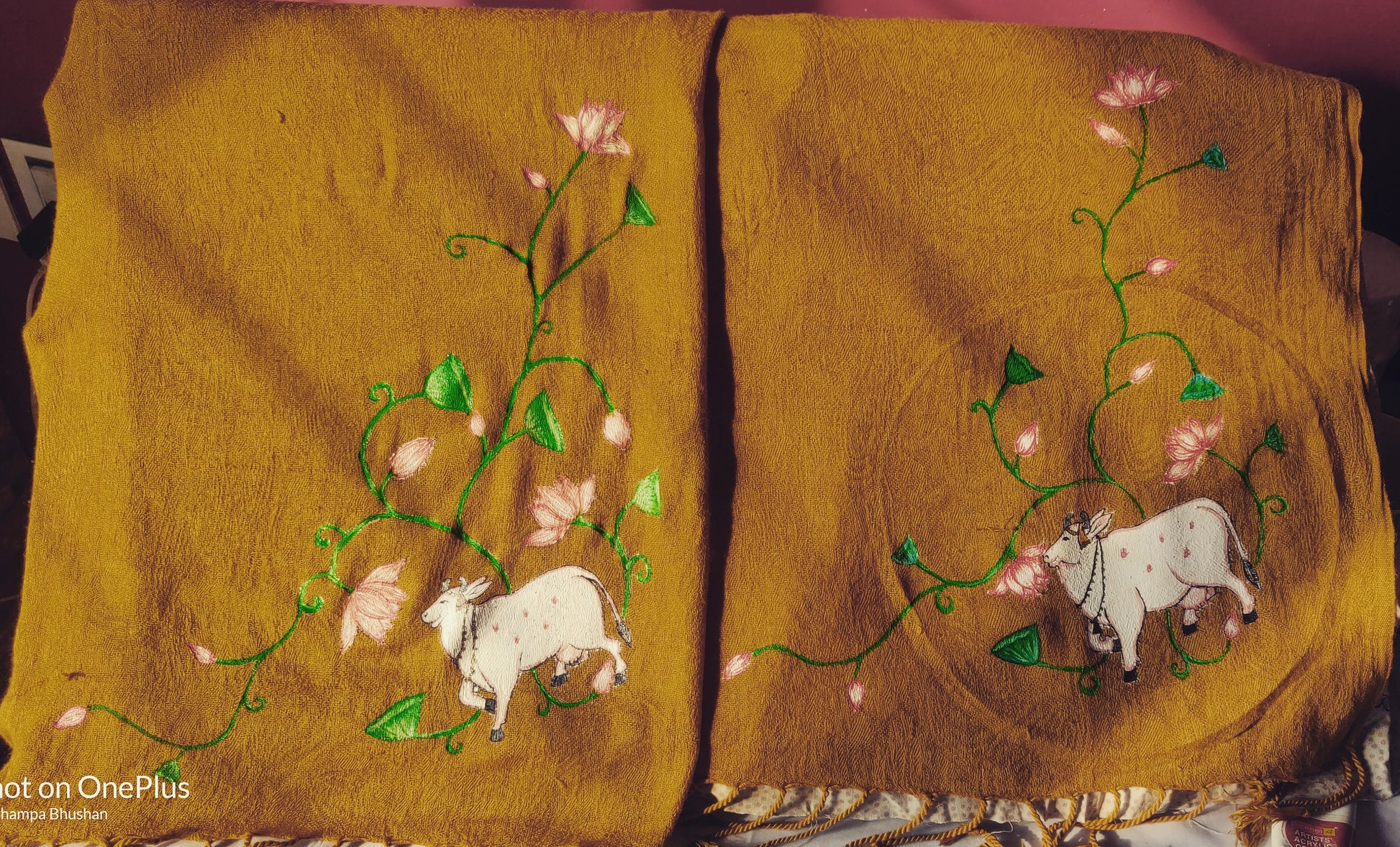 Hand-Painted Pichwai Stole and Saree Blouse -SOLD🔴