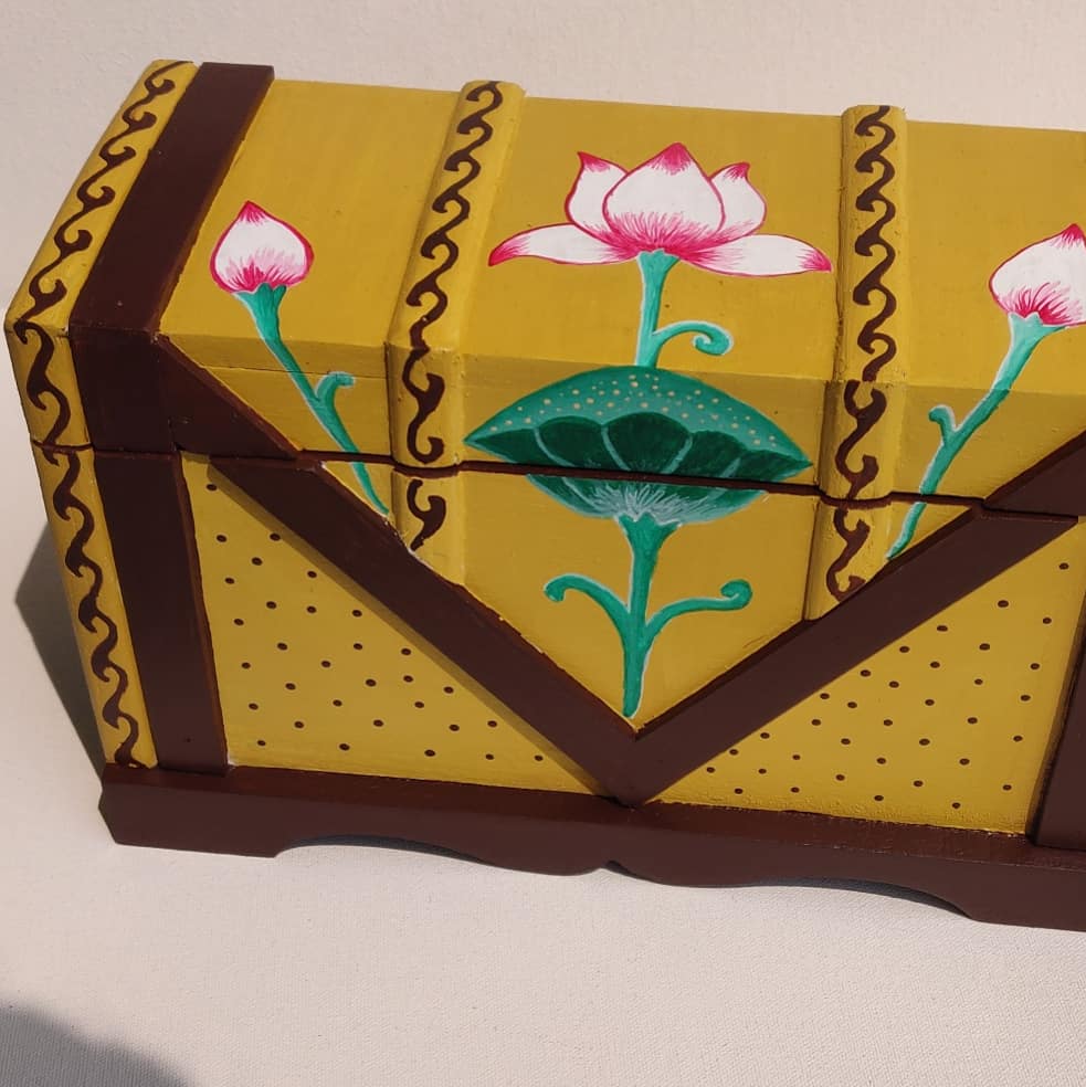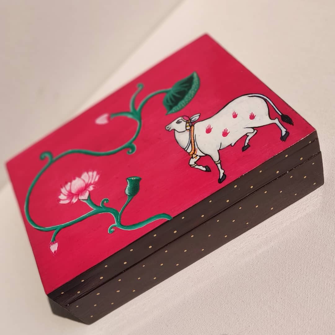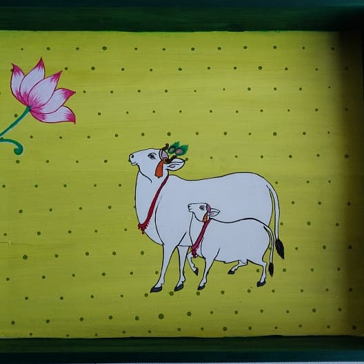 I had the opportunity to work on a bulk project creating trays with unique Pichwai designs for a client, and it was an incredibly rewarding experience. Each tray was hand-painted with intricate patterns, bringing the traditional art form to life in a new way. It was fascinating to see how the designs transformed simple trays into beautiful works of art. This project not only allowed me to showcase my creativity but also deepened my connection with the rich cultural heritage of Pichwai.