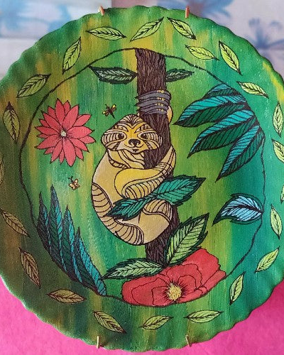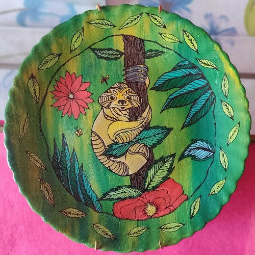 Add a playful touch to your home with this hand-painted ceramic plate featuring an adorable koala on a tree. Vibrant acrylic colors bring its fluffy fur and expressive eyes to life, making it a delightful decorative piece. Perfect for displaying on a stand or hanging on a wall, it adds charm and warmth to any space. A great gift for animal lovers, this plate is meant for decoration, not for serving food. Bring home this cute koala artwork today!